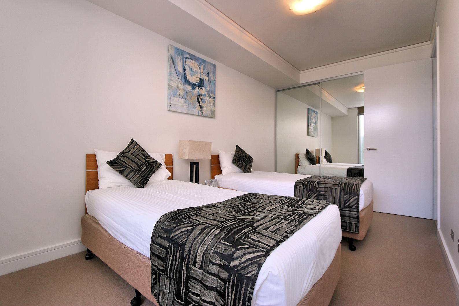 - 2nd Bedroom features 2 single beds and access to a private outdoor area.