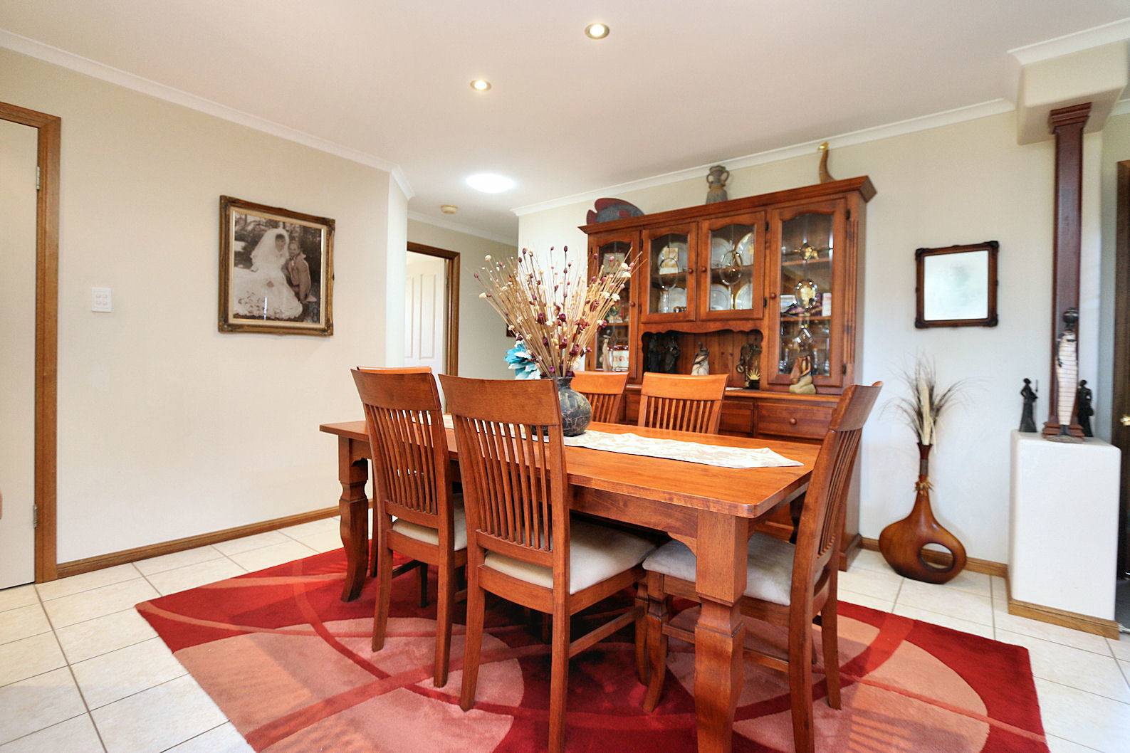- Adjacent the kitchen is a large dining room, with lovely tiled floors.