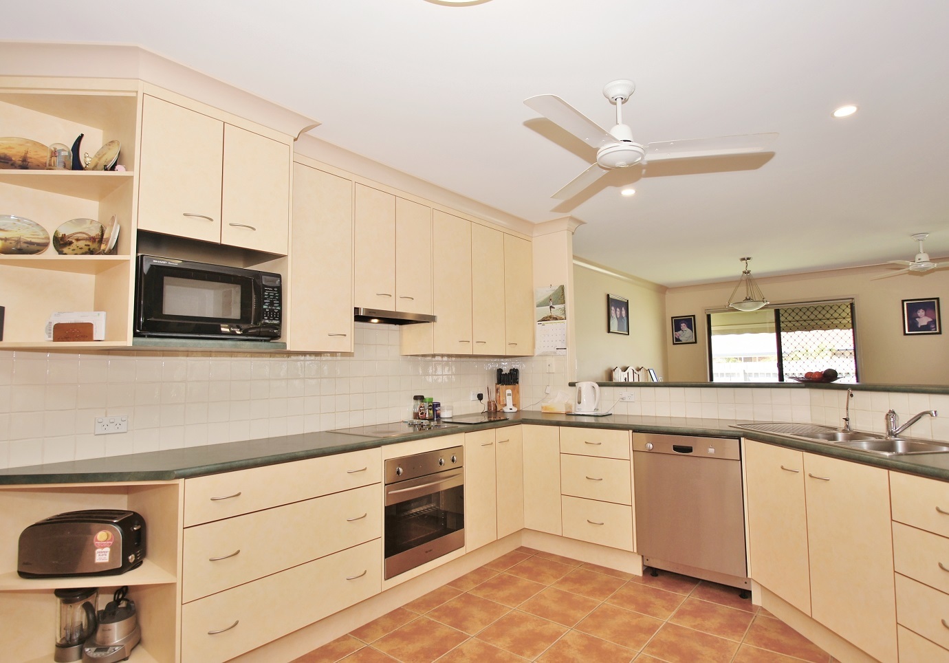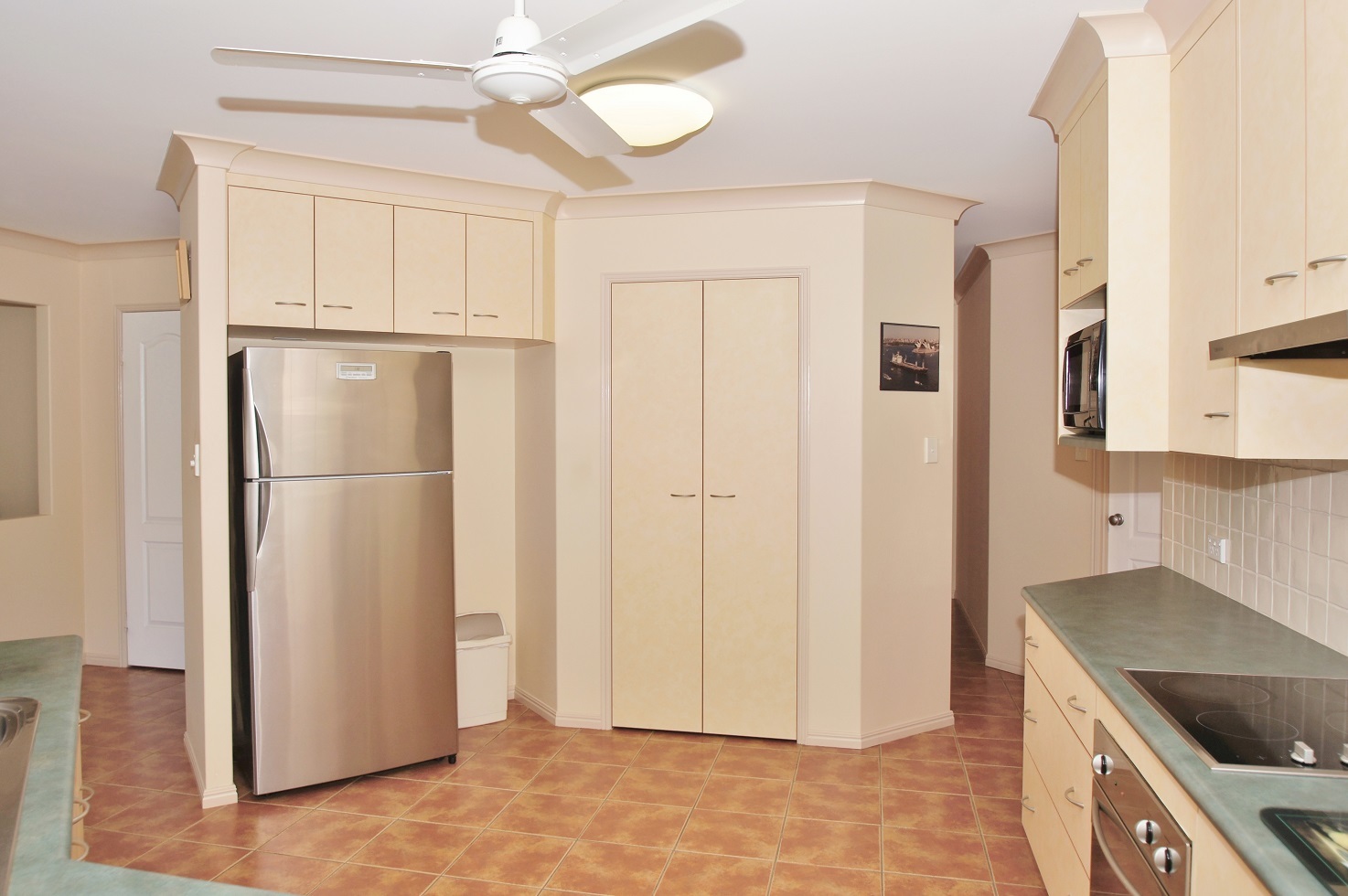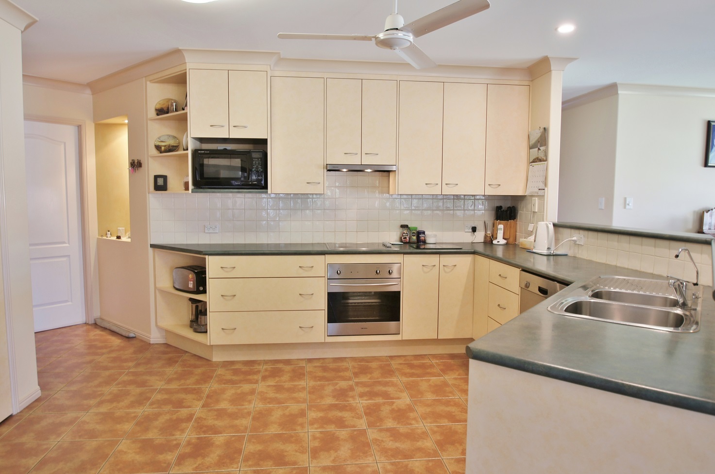 * Spacious kitchen with ample storage.