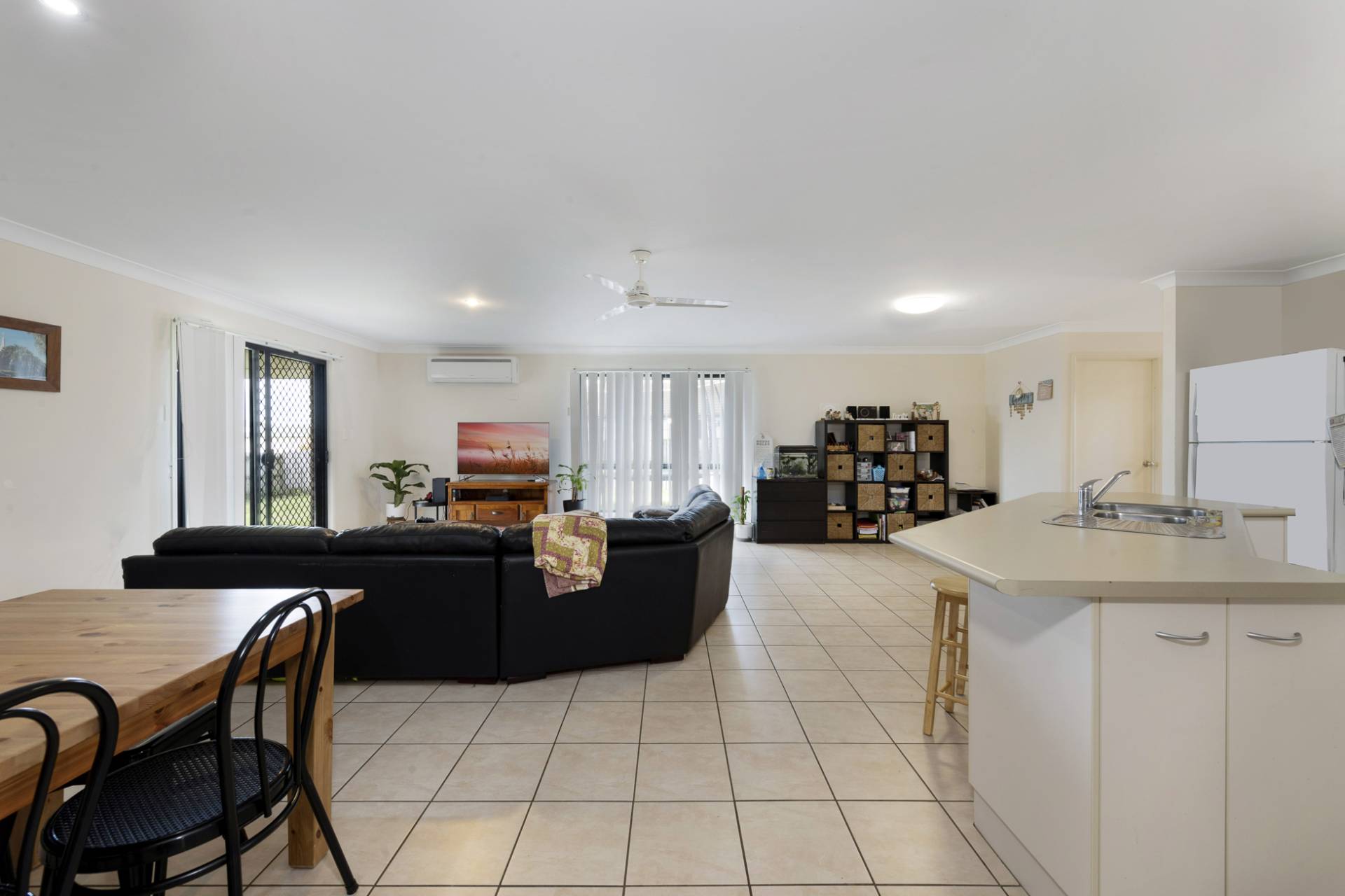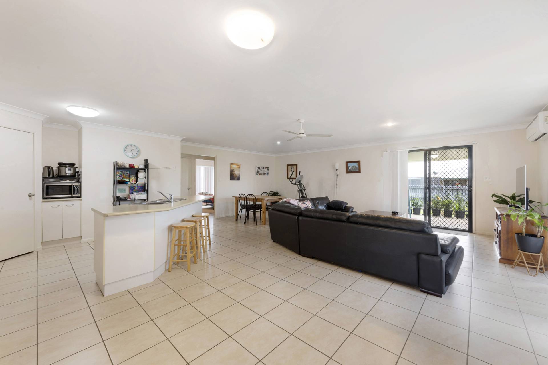 * The kitchen is modern, has ample bench space, a dishwasher and opens to a spacious dining and living area.