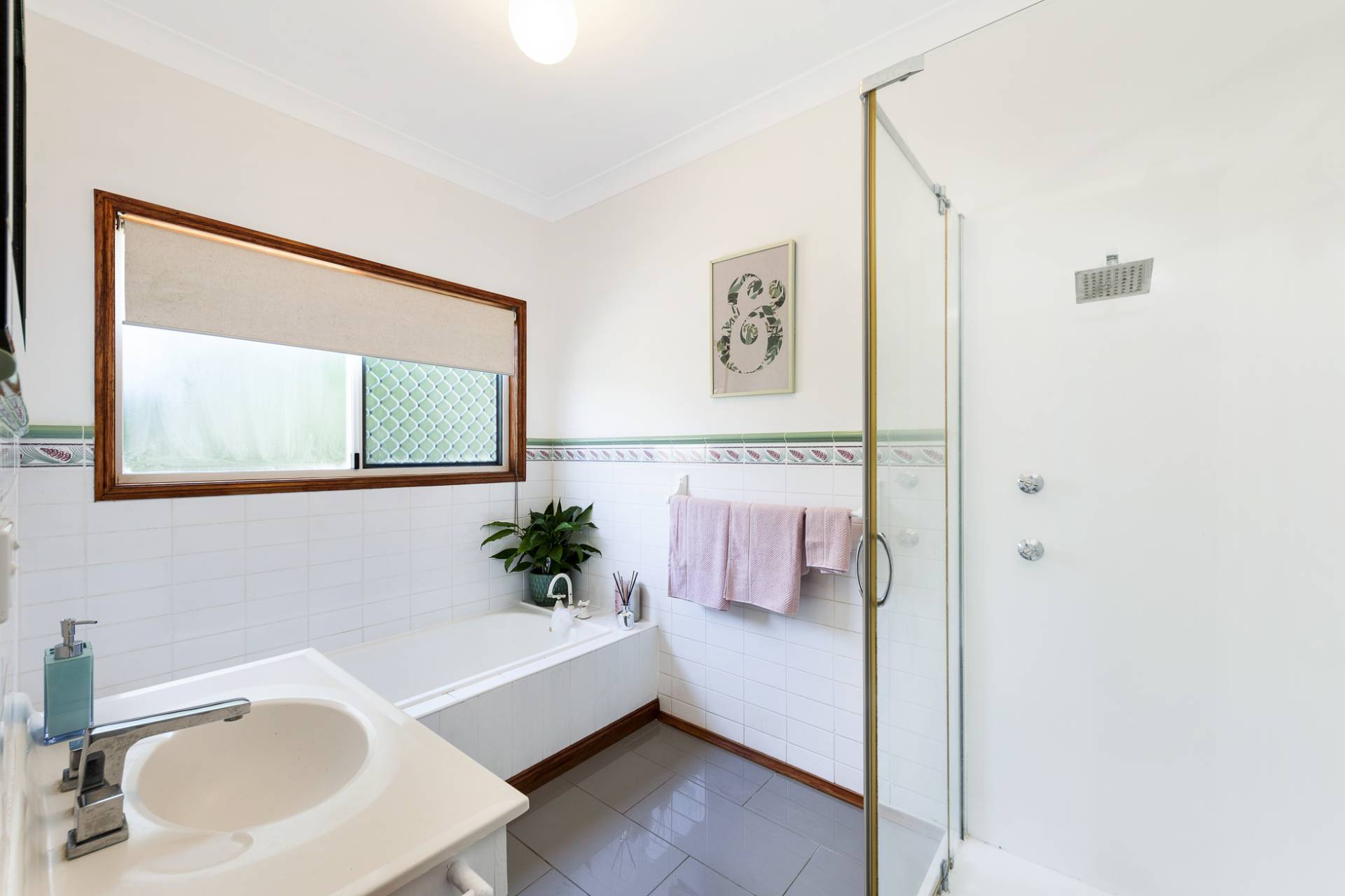 * Spacious bathroom with modern finishes.