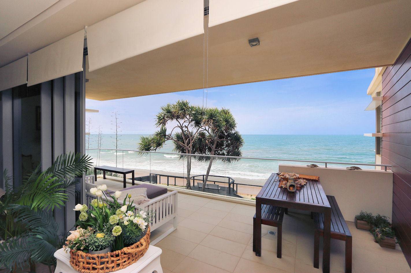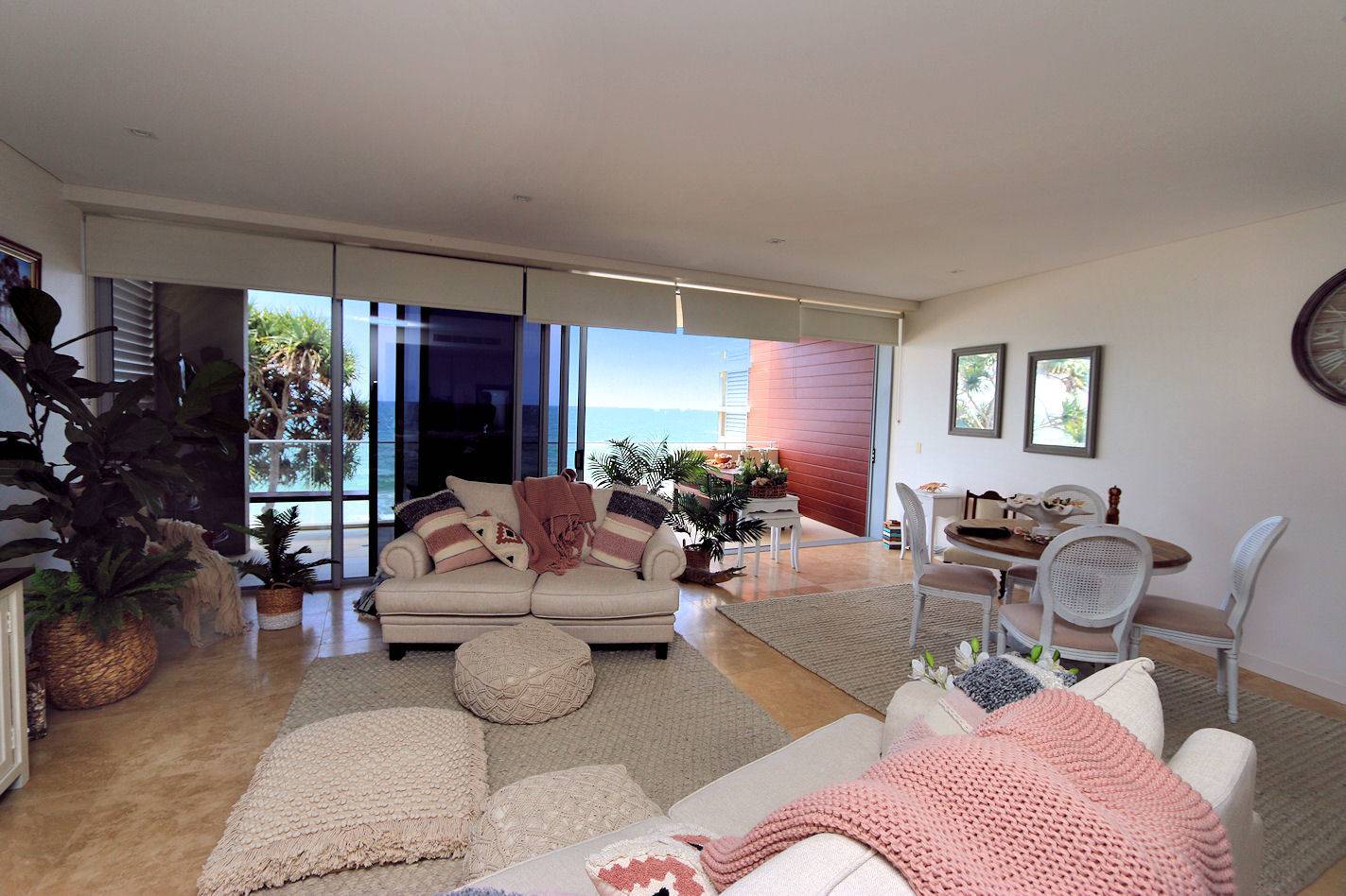 Absolute Ocean Front, apartment situated on the 2nd level. Own private entry area. 3 Bedroom. Master bedroom has open plan ensuite with spa bath,. All bedrooms have built-in robes. Open plan kitchen / family room with fantastic ocean views dishwasher,  plenty  of kitchen cupboards and bench space. Under covered balcony overlooking the beach. Timber boardwalk with steps down to the beach. Communal in-ground Pool. Basement secure car parking Lift access. Very quiet complex and this unit is sure to please.