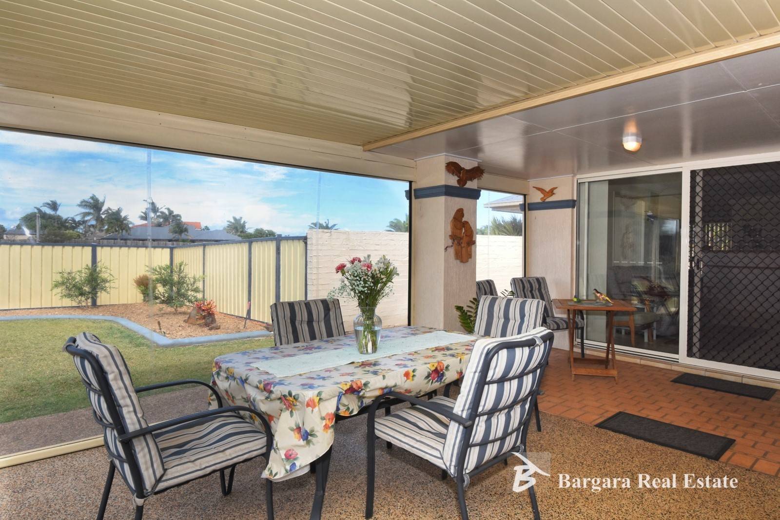 *Very large covered rear patio area, with quality pull down transparent blinds.