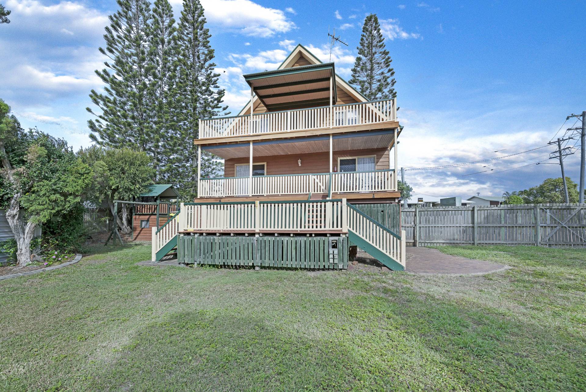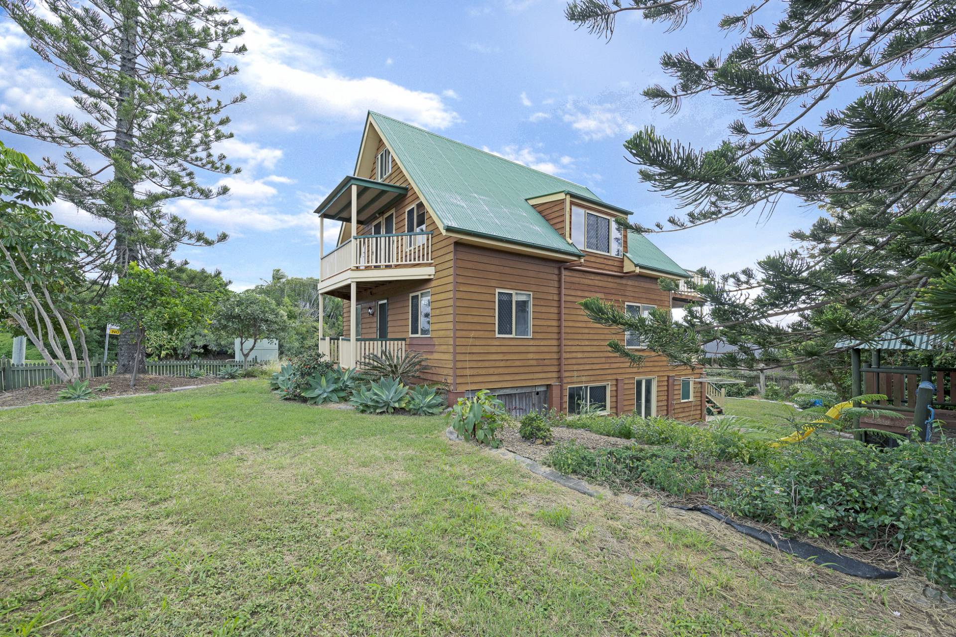 Very large family home, ‘310m2’ built over three levels, has a lovely outlook over parkland and captures the cooling ocean breeze.