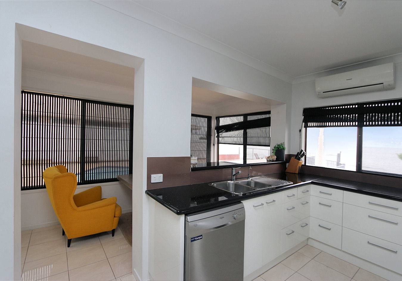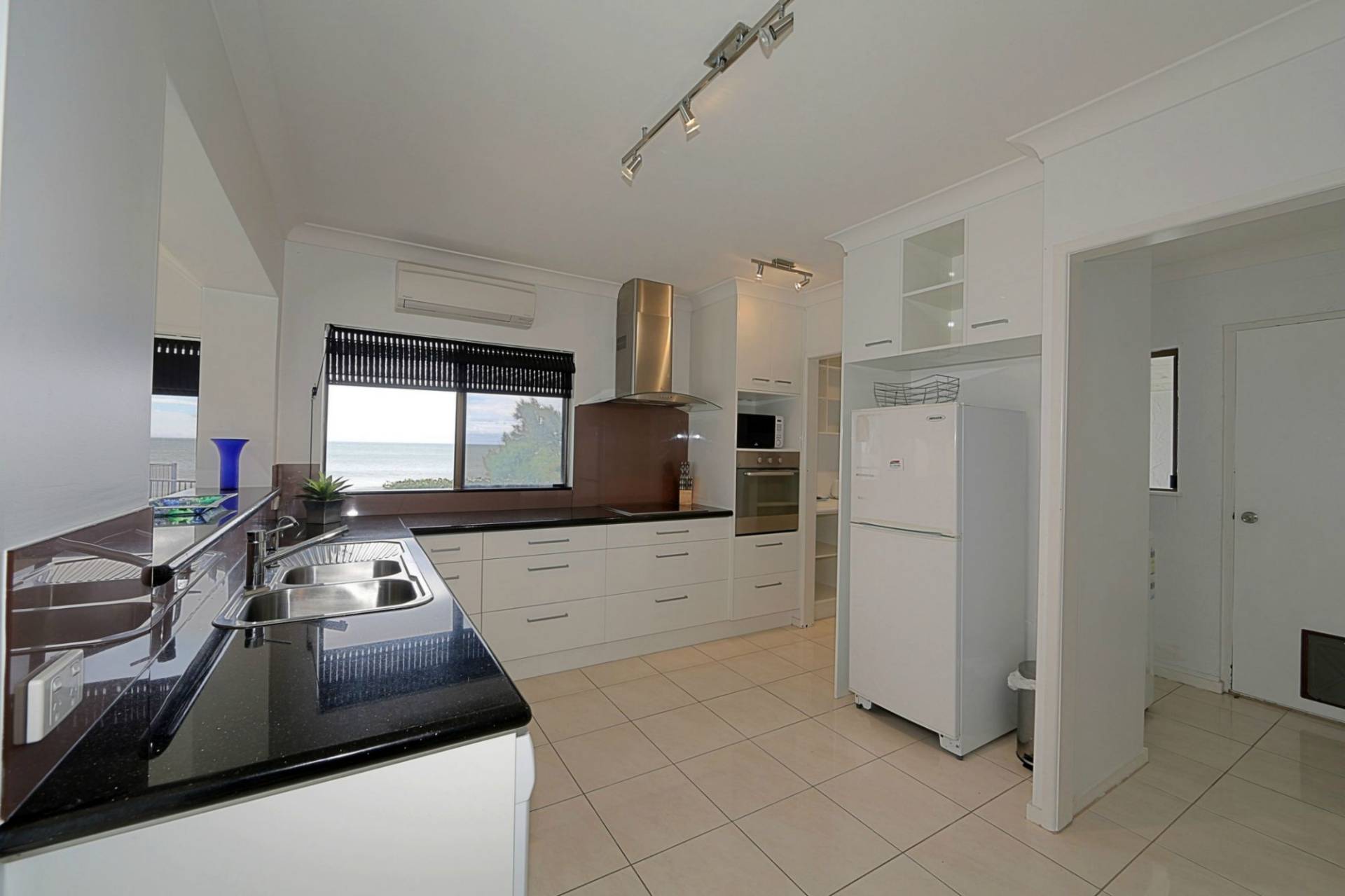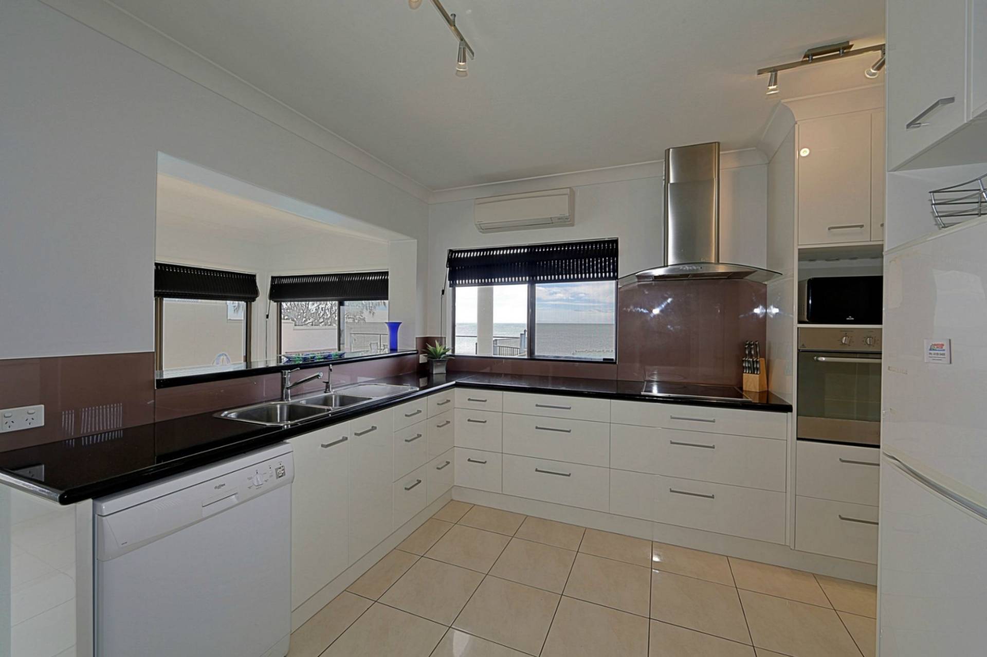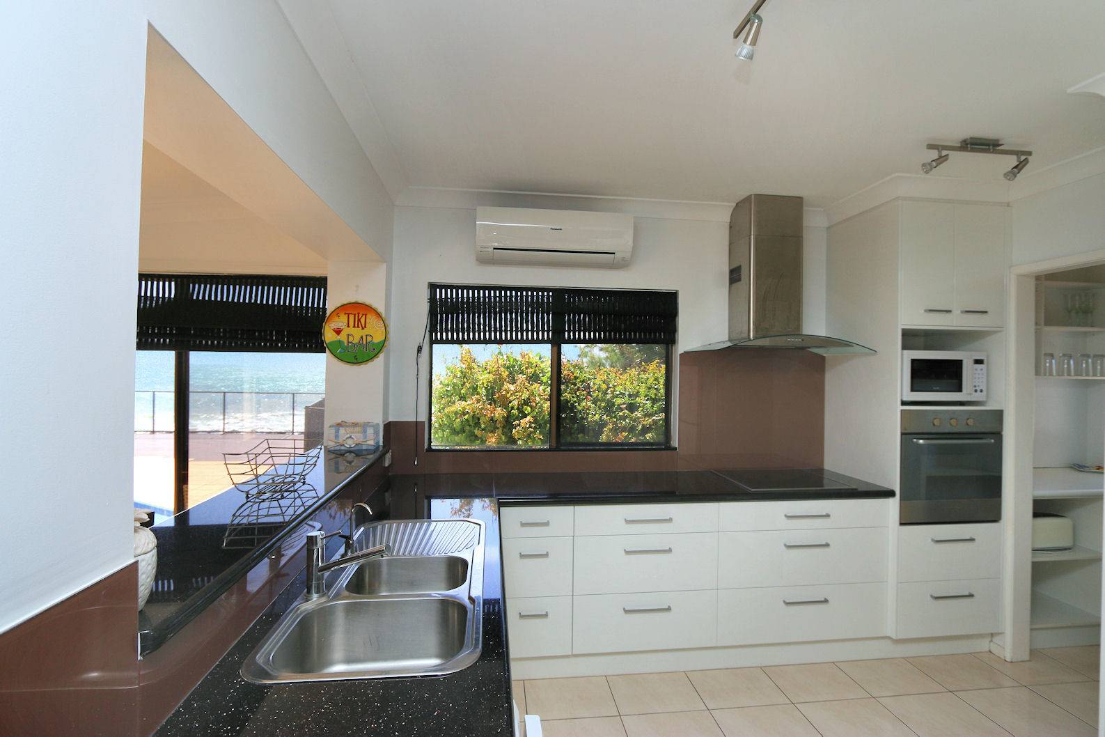 - A well equipped kitchen has plenty of storage and bench space, stainless steel appliances, dishwasher, ocean and pool views.