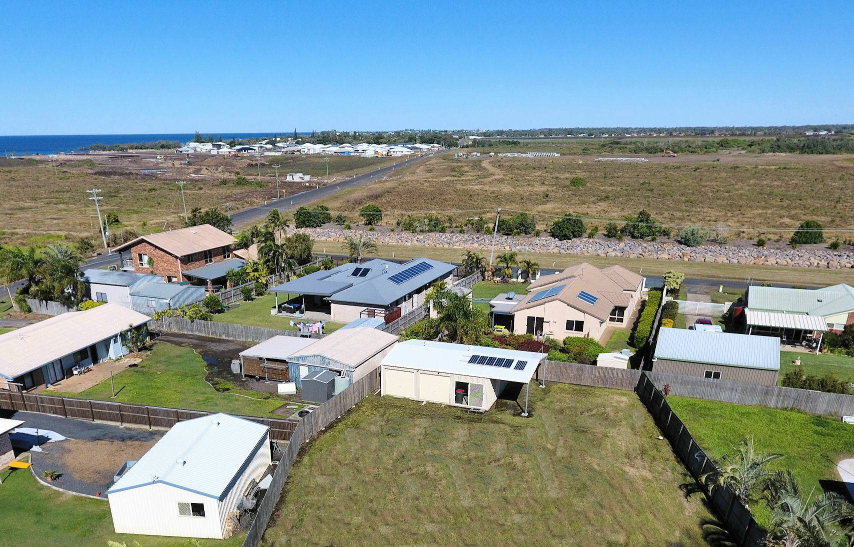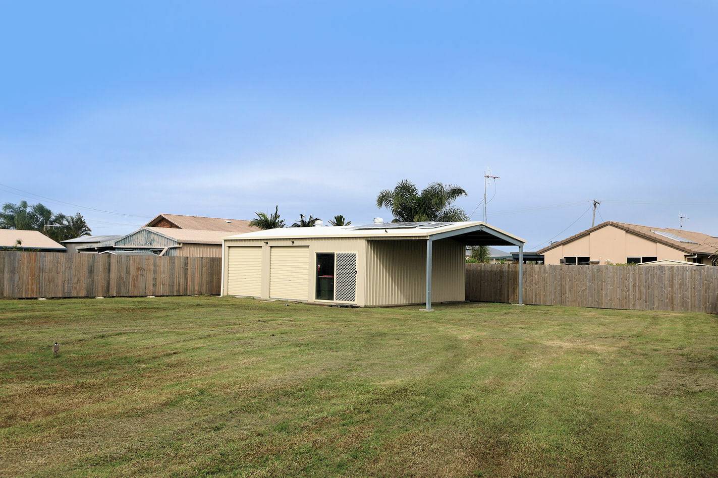 Large coastal land of 1336m2 with Colourbond garage, comprising three bay accommodation and storage area.