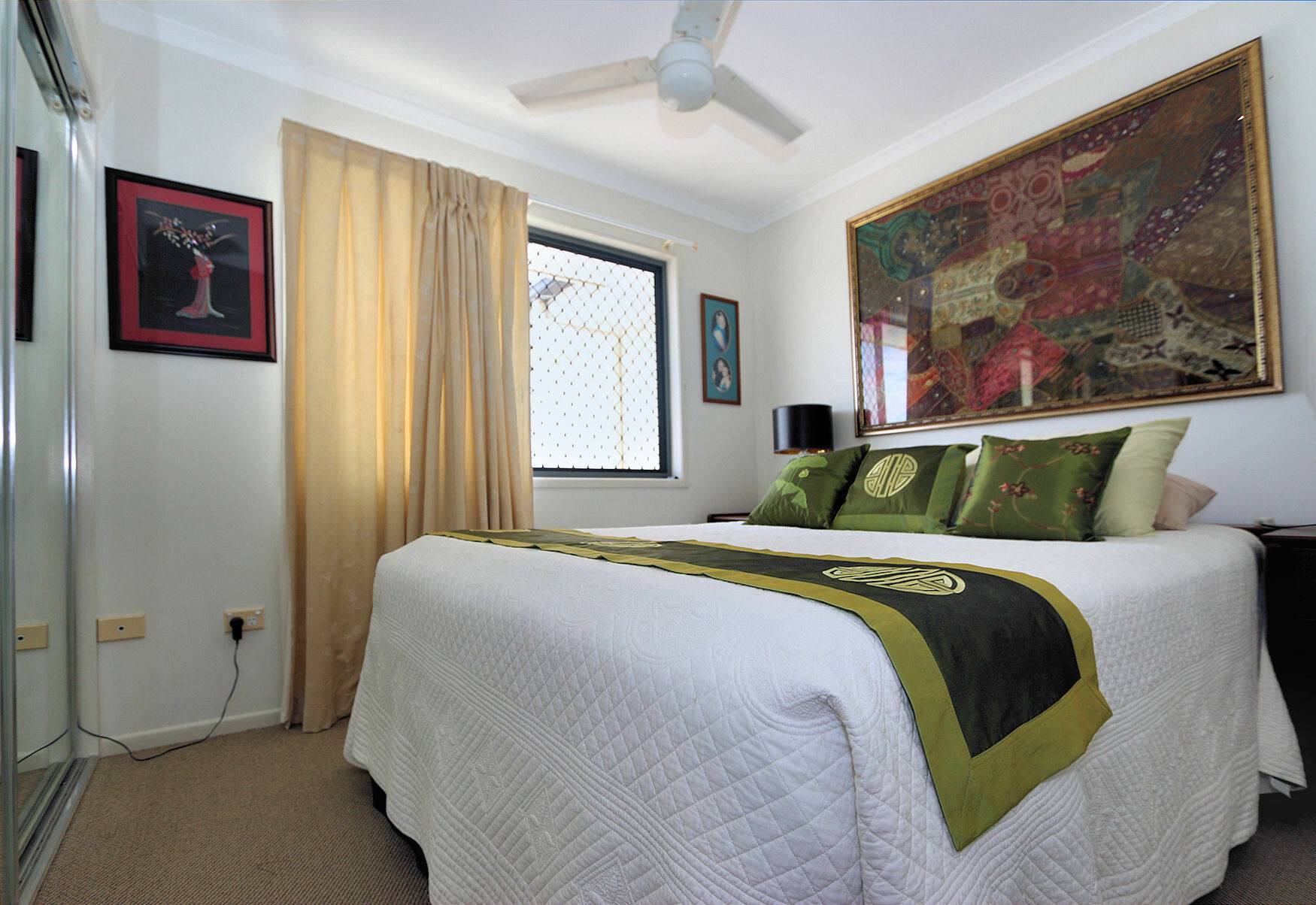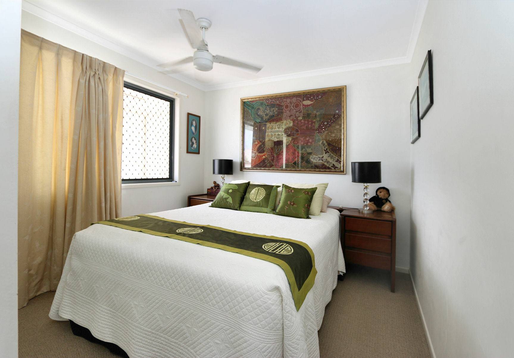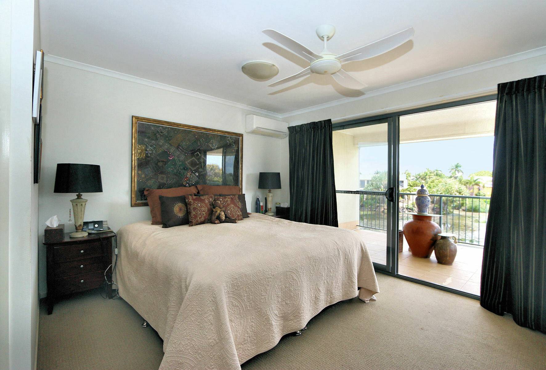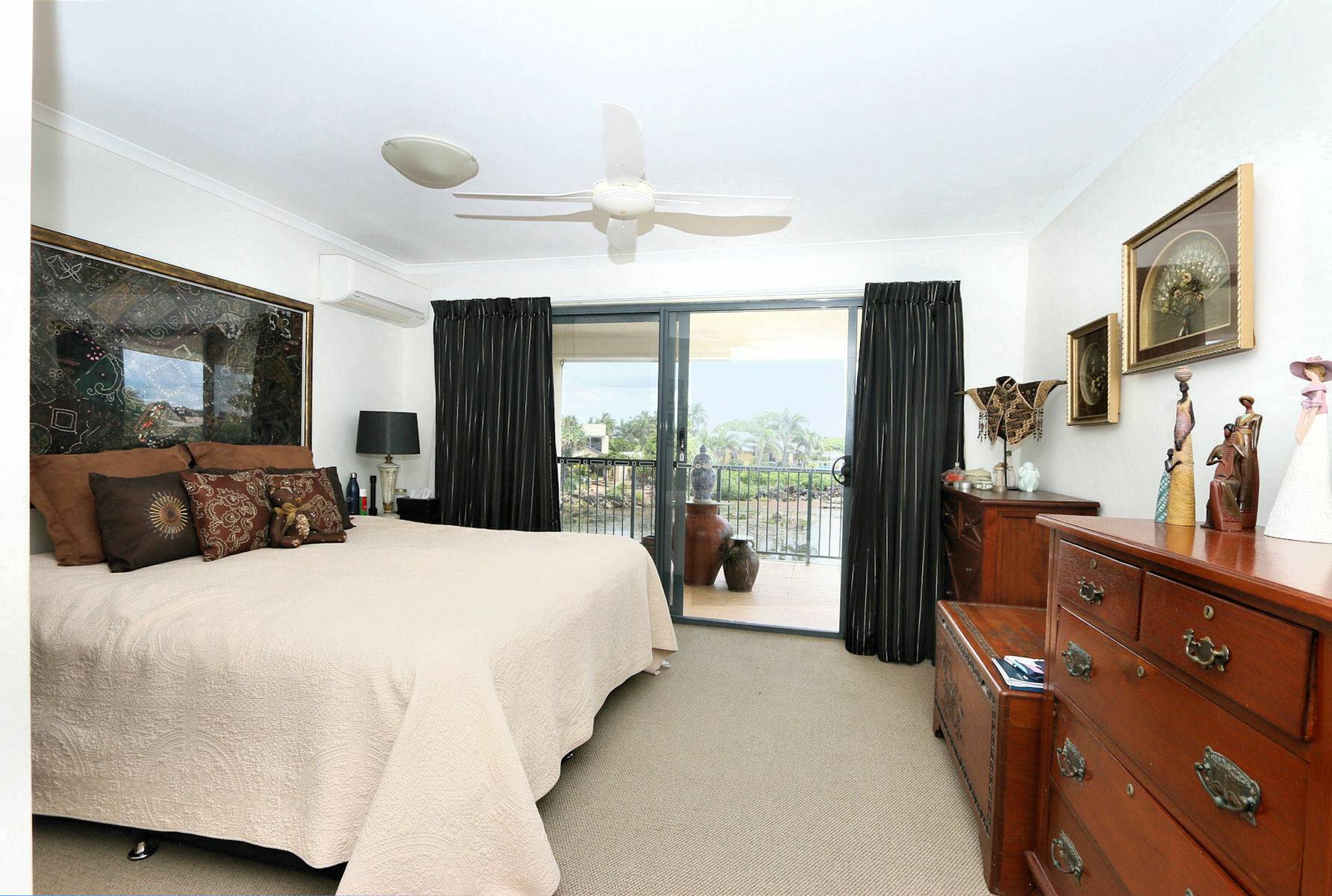 • 3 Bedrooms: The master bedroom boasts a spacious private balcony overlooking a picturesque lake, complete with a walk-in robe, en-suite bathroom, and air conditioning. All bedrooms offer generous proportions and serene garden views.