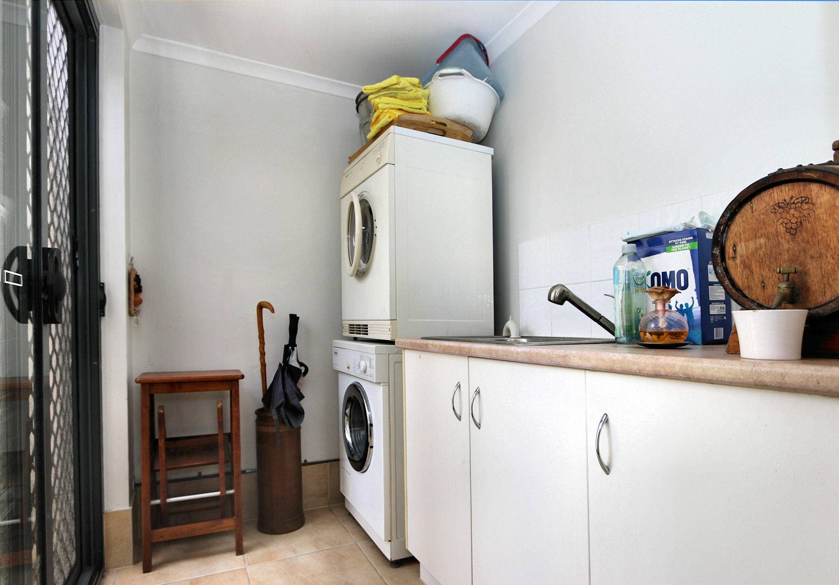 • Great Laundry with Built-in Cupboards: Convenient side access to the private backyard.
