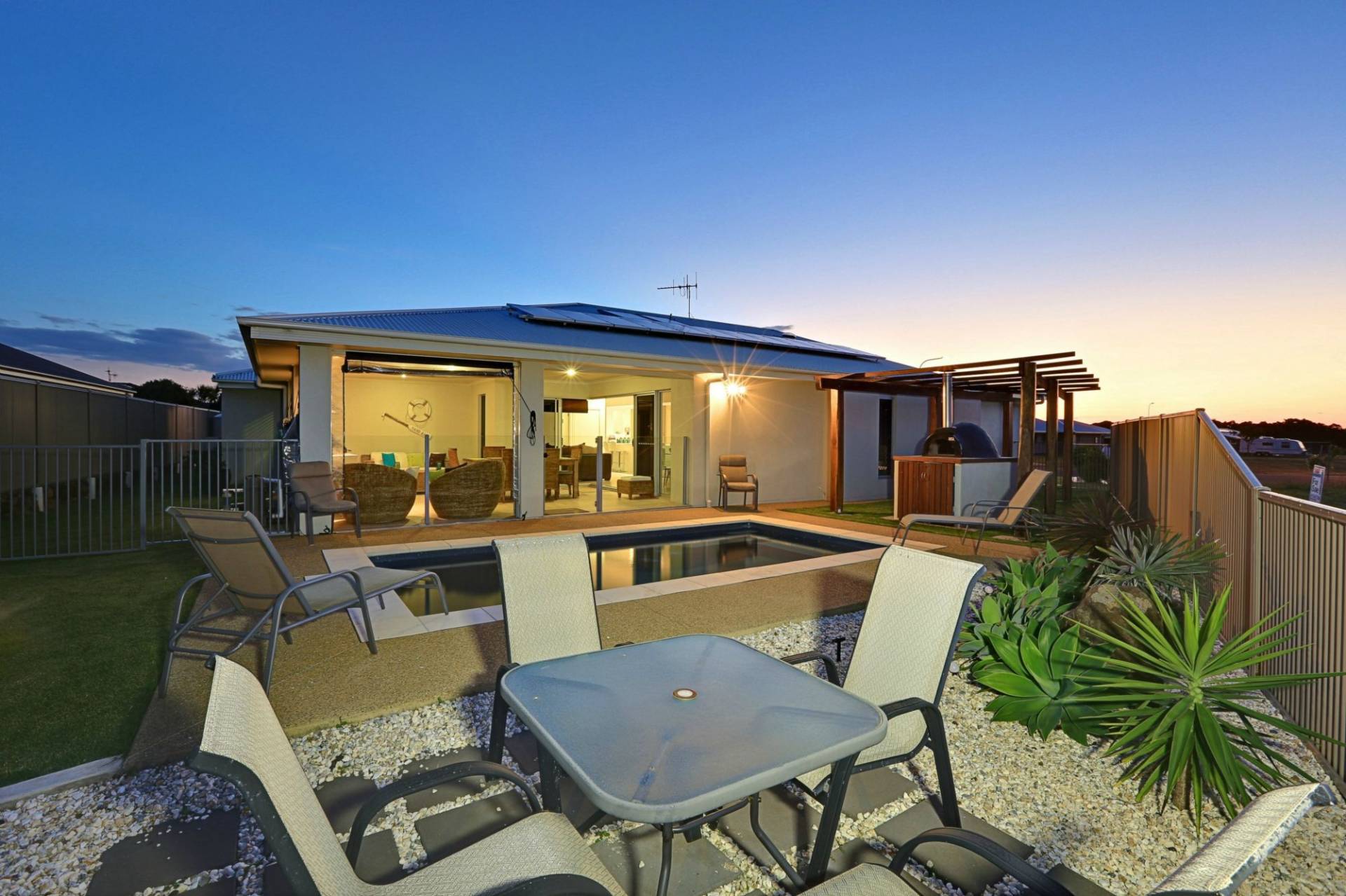 THIS 4 BEDROOM. DLUG.2 KING SIZE,2 QUEEN SIZE 3 BATH MAIN,ENSUITE TWIN SHOWER ROSES.GUEST. MEDIA WIRED SPEAKERS. POWDER ROOM.MAIN WALK IN ROBE.ALL BUILT -INS.HUGE KITCHEN MARBLE LIKE BENCH TOPS.GAS STOVE,ELECTRIC COOKTOP.DISHWASHER.WALK IN PANTRY WITH AUTO LIGHTS.OPEN PLAN COMBINATION LOUNGE DINING.HUGE LAUNDRY.DUCTED AIR THROUGH OUT.UNBEIVEABLE OUTDOOR ENTERTAINMENT AREA. BUILT IN FRIDGE BBQ ALL UNDER MAIN ROOF AREA. PIZZA OVEN OVER LOOKS THE SALT WATER POOL.MAN'S SHED 6X9 EXTRA HIGH FOR THE BOAT SEPERATE POWER BOARD FOR THE WELDER.FRESH WATER TANK.SOLAR POWER TO GRID.
